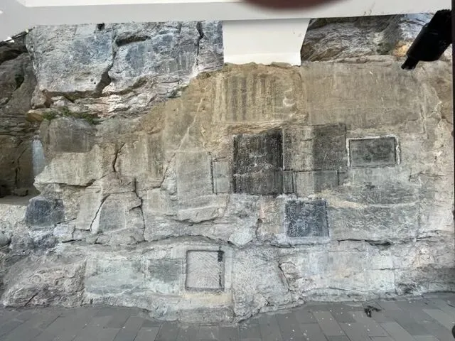 继续往前,来到一处石壁下,有许多文人墨客留下的摩崖石刻。