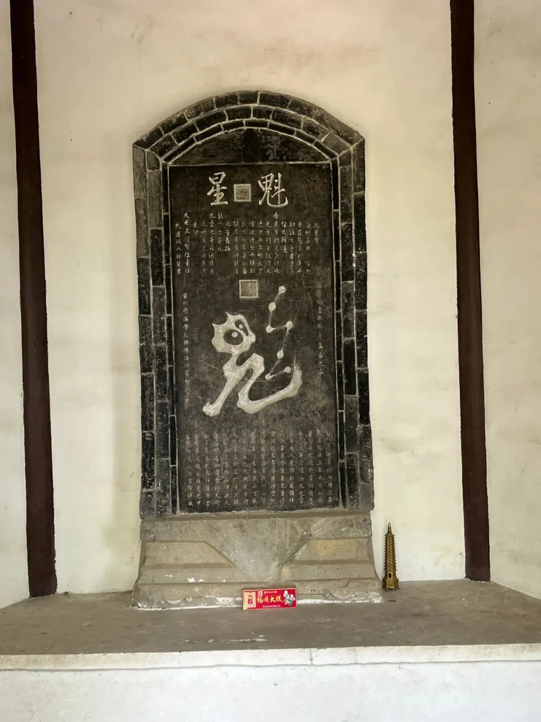 站在门口向内张望,一块古碑,名为魁星碑,中间的魁字确有“鬼兴足而舞其斗”之意。