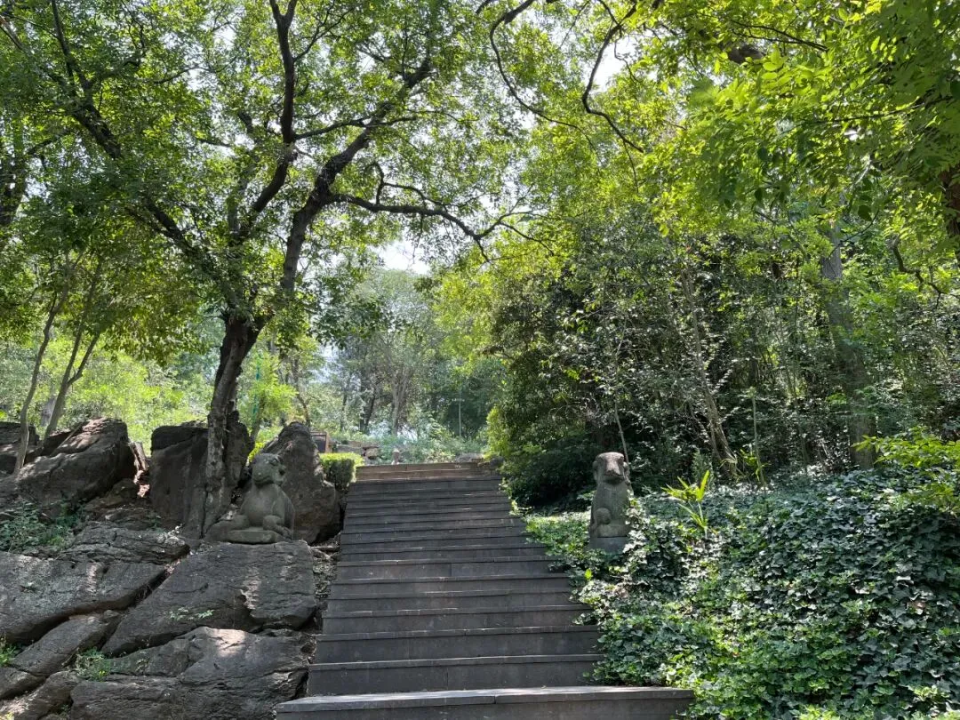 路口蹲踞两头怪兽,似猴似豹。