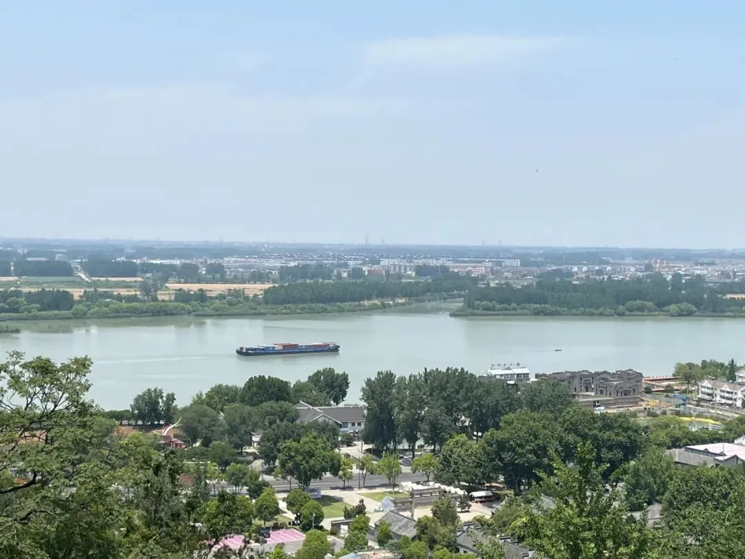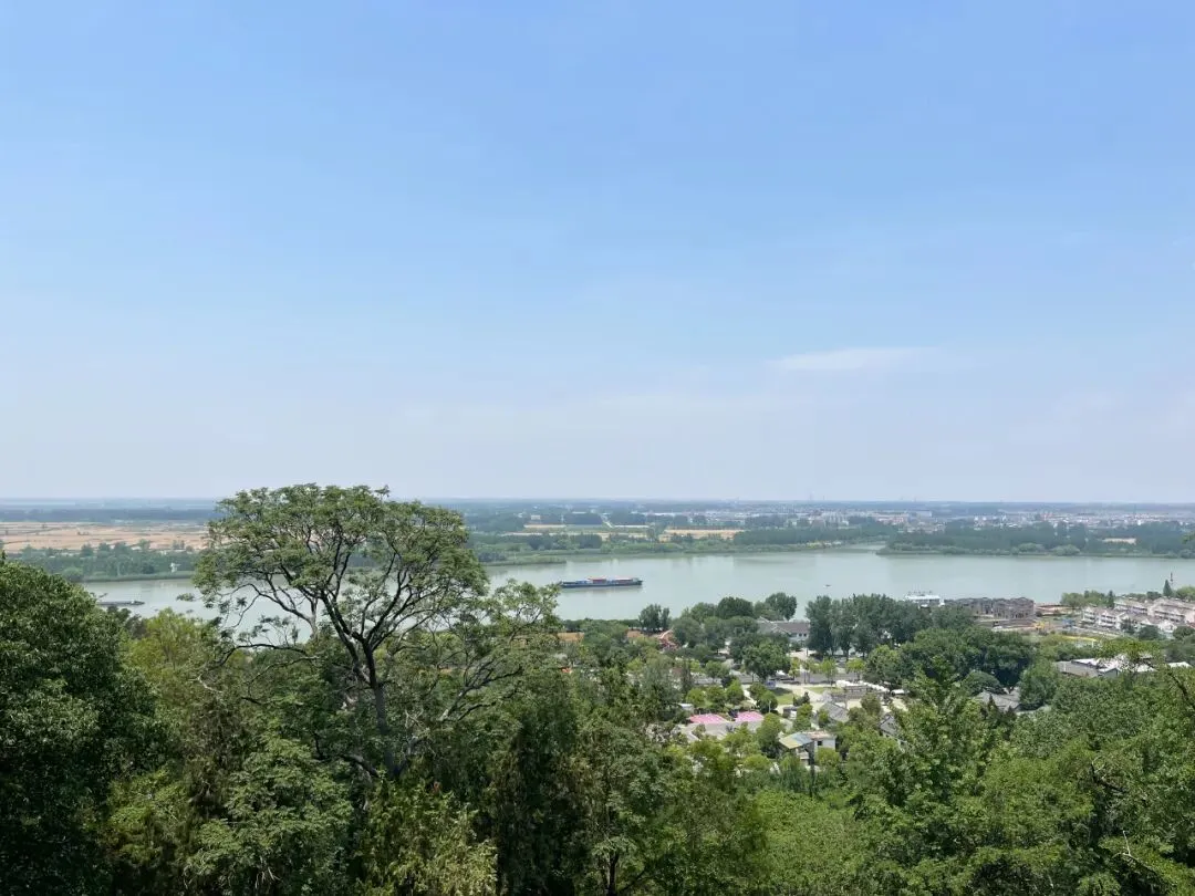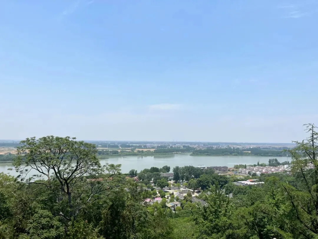终于来到山巅,清风拂面,向北眺望,淮河绿水东流,碧波如镜,远树田庐历历在目。