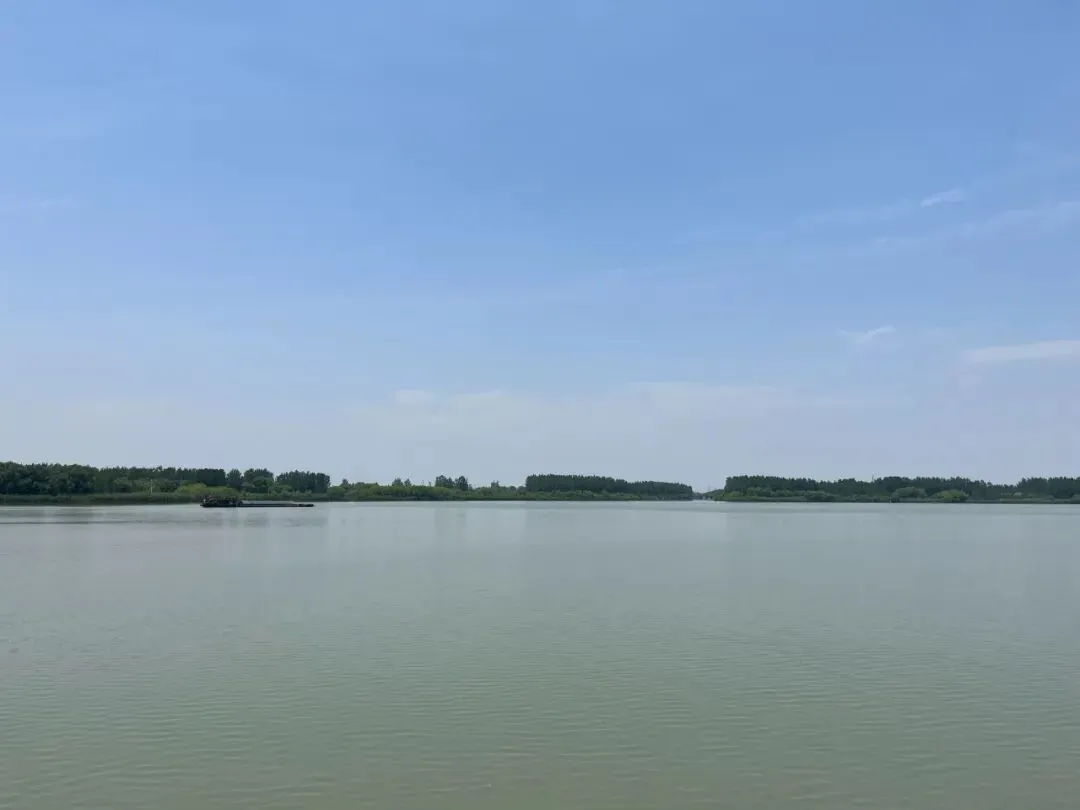 一条长驳船,满载红色的集装箱,向东驶向洪泽湖,连通大运河,继而通江达海。