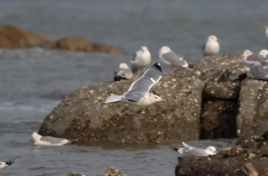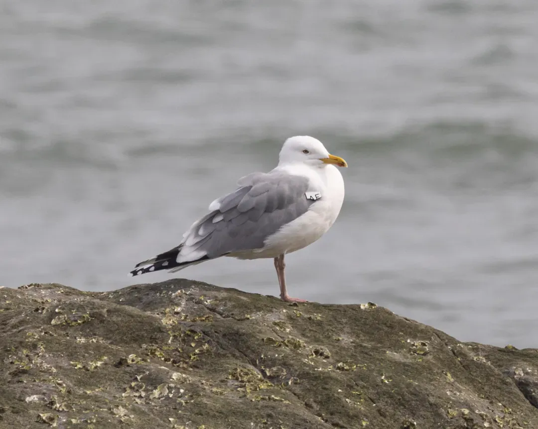 2014年初,一位姓郑的观鸟爱好者在青岛极地海洋公园外的礁石滩上,第一次拍到了这只带有翼标的银鸥。此后,除了2017年是在4月份被拍到之外,其他年份它都在1月上旬准时现身。