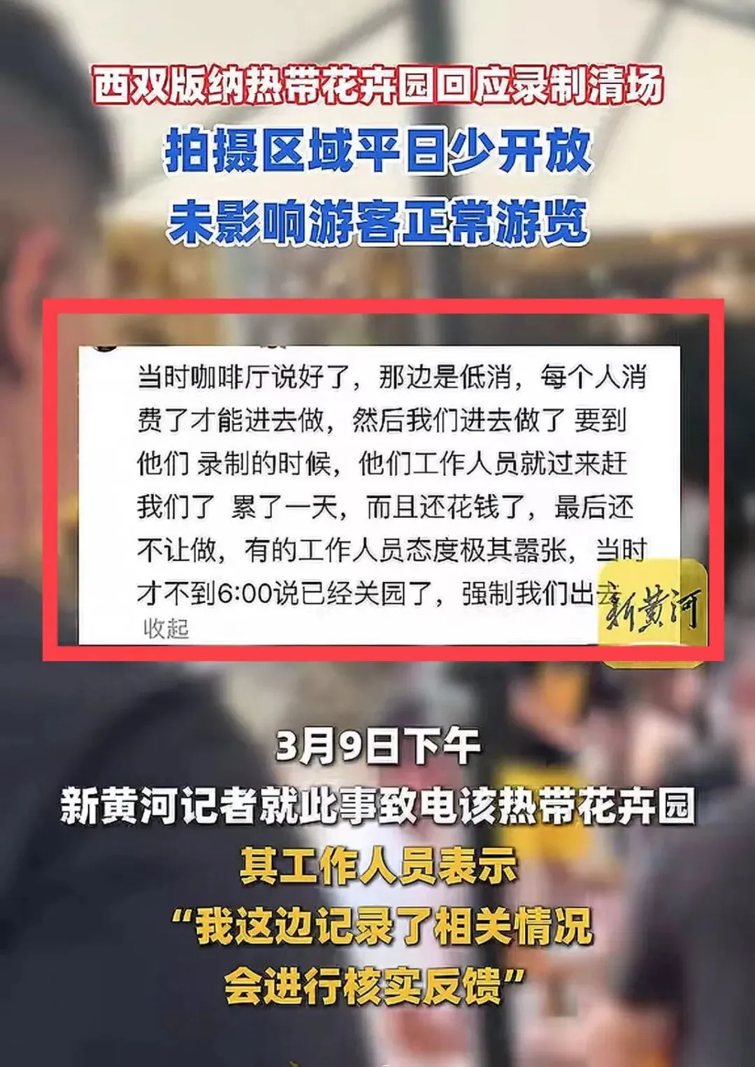 云南西双版纳花卉园景区,明星录节目:游客被赶走;网友喊话退钱