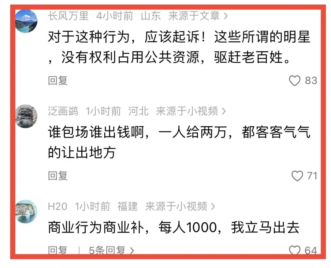 4、对于这种行为,应该起诉!这些所谓的明星,没有权利占用公共资源,驱赶老百姓。