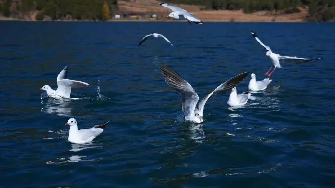 湖水蓝得透亮,能看见12米深处的水草摇曳;西伯利亚的红嘴鸥还在湖面盘旋,用翅膀划出春天的轨迹;湖畔的桃花、梨花渐次绽放,粉白花瓣飘落在摩梭人的木楞房旁。