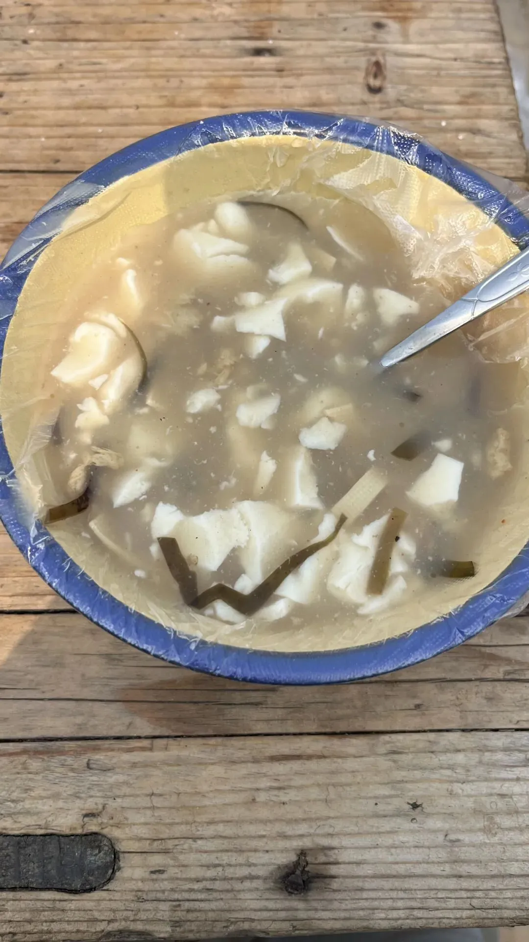 夲地镇上小饭店特色饭,烫面,又咸又浓重。浓郁的方便面调料味。不好吃。(本地小姐姐告诉我,烫面是大米磨粉后做的!)
