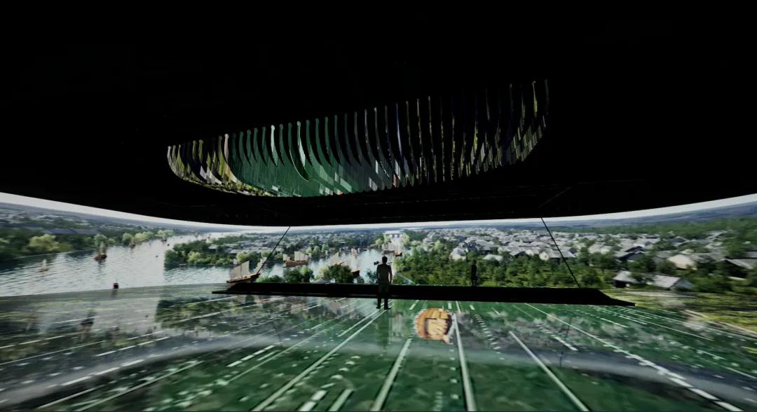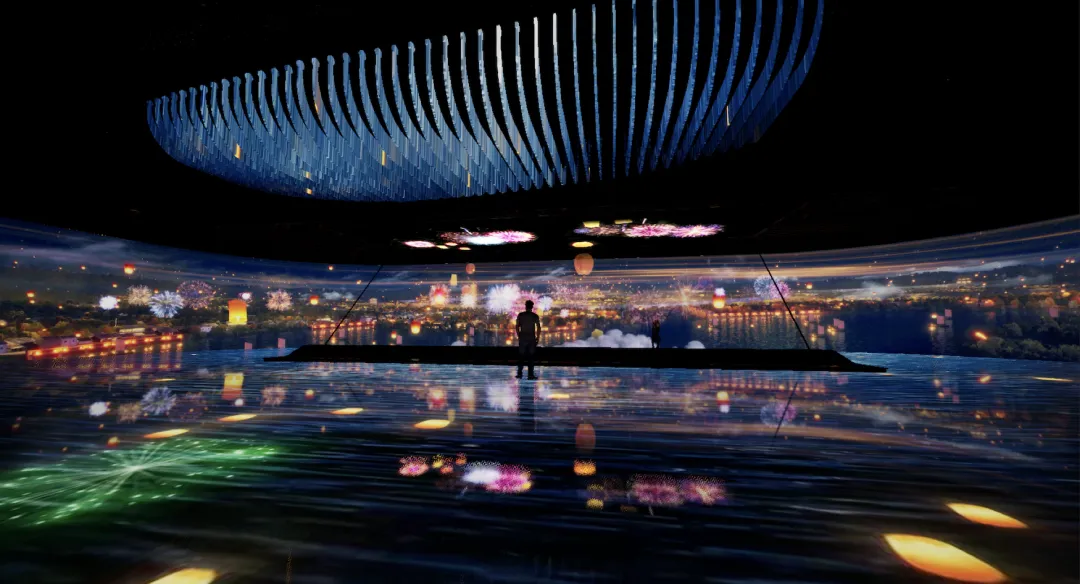 寓意大运河流淌不止,文化传承生生不息。该展览以“波沿南北 泽被千秋”、“集萃中国 流光溢彩”、“舟楫千里 惠济天下”为叙事结构,以全域沉浸CAVE体验系统、核心区三维衍射系统、衍生区超智能数字点云系统打造沉浸式数字体验空间,让观众成为展览的一部分,实现身临运河、畅游运河。这是在国内博物馆常设展中首次尝试如此规模的三维衍射系统装置。在实现视觉震撼的同时,借鉴舞台艺术设计,让装置、灯光、影像分而有序、合而成势,艺术与科技共生,奉上一场耳目一新的视觉盛宴。