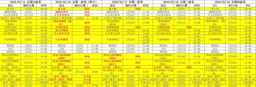 2026年春节预约门票时间表