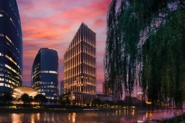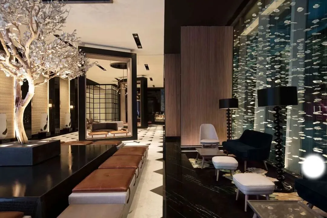 整座大楼充满钻石元素 ,内部的空间是非常时尚的现代设计, 到处点缀着姹紫千红的花团, 充满了和谐的美感 ,客房里270度落地大窗, 可以俯瞰整个太古里。