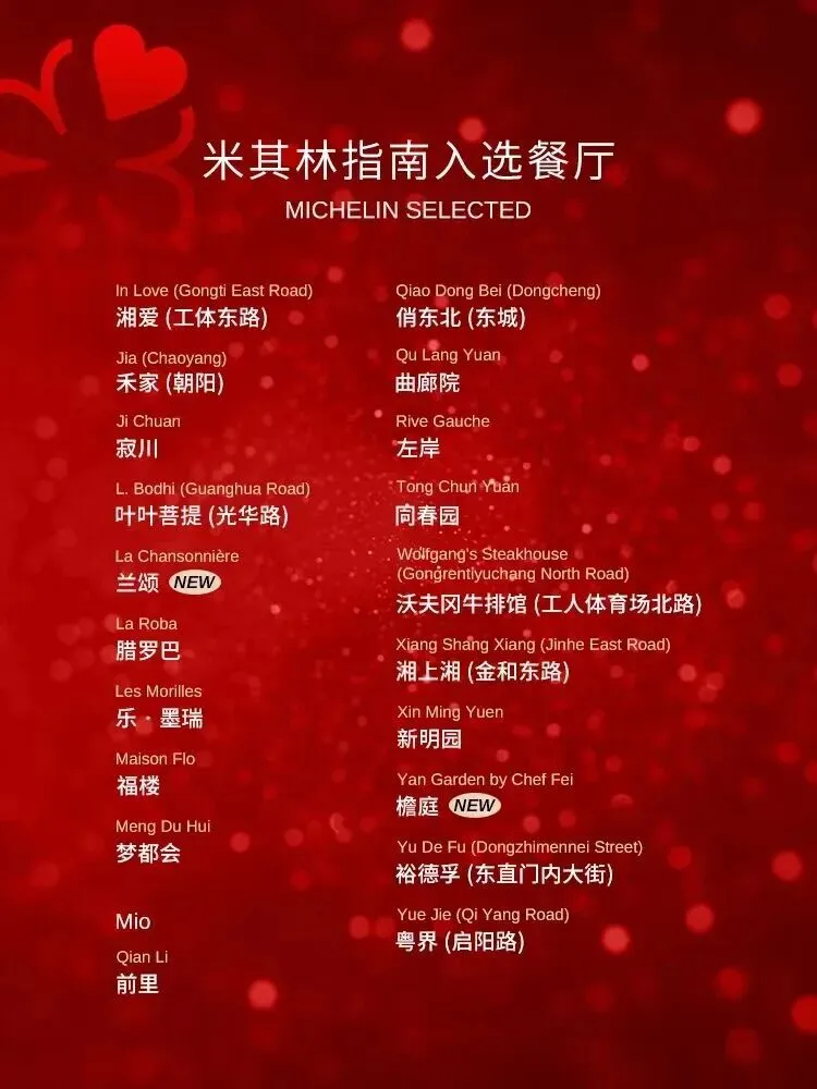 5 高端五星:三里屯chao(三里屯)、康莱德(团结湖)、日出东方凯宾斯基(雁栖湖)、JW万豪(大望路)、粤财JW万豪(宣武门)、Jen新国贸(国贸)、北辰洲际(奥林匹克公园)、华彬费尔蒙(永安里)、首钢园香格里拉(首钢园)、长城脚下公社(八达岭)
