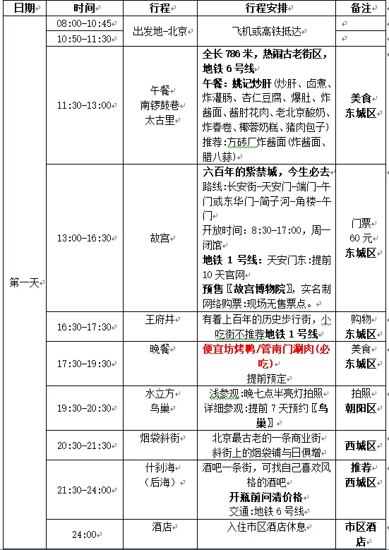 第一天:下午抵达北京,安排住宿,自由活动