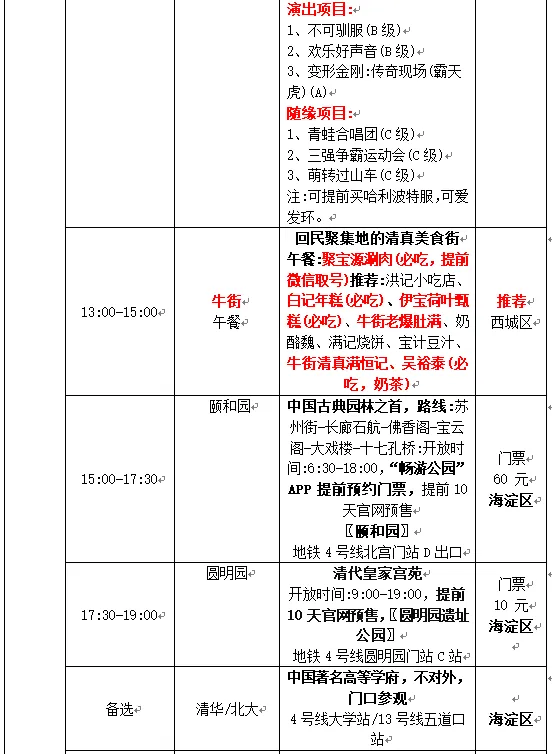 探访皇家园林与顶尖学府 | 上午颐和园、圆明园,下午北京大学、清华大学 | |