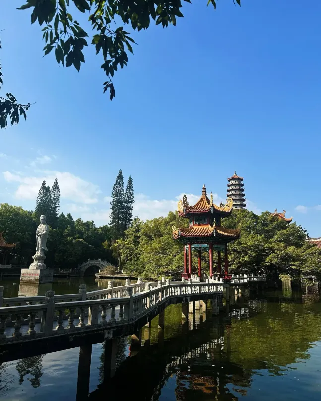免费开放,游船另收费。福州历史最悠久的公园,江南园林风格,柳堤、开化寺、宛在堂错落有致;春日桃花、秋季菊展,泛舟湖上看亭台倒影,与左海公园相连,适合散步、亲子游。建议游玩2小时。