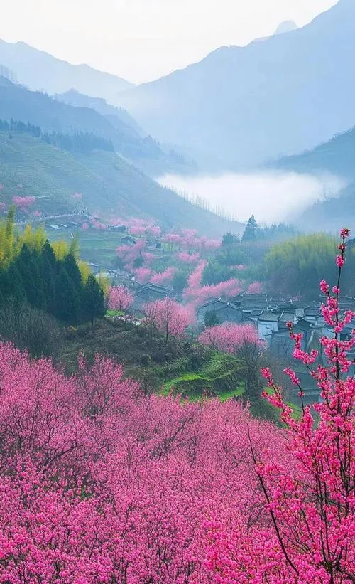 平原这个地方,每年三月桃花开的时候,整片山坡都是粉色的,远远看去像铺了一层粉色的毯子。桃花源不是一个固定的景区,是当地农民种的经济作物,但因为规模大、品种好,自然形成了一片花海。来这里的最佳时间是早上,那时候晨雾还没散,桃花若隐若现,配合着远处的青山,整个画面美得不真实。