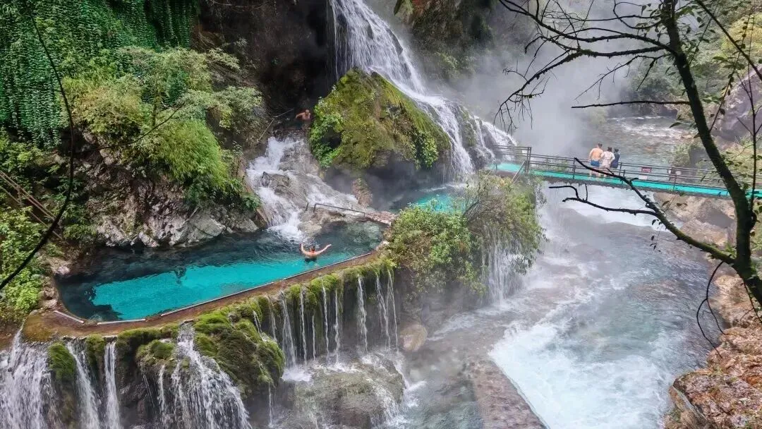 5️⃣ 温泉瀑布(四川大凉山)