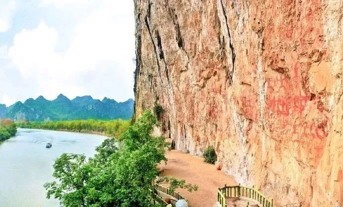花山岩画景区是世界文化遗产——左江花山岩画文化景观的核心组成部分,位于风景秀丽的明江之滨,是目前为止中国发现的单体最大、内容最丰富、保存最完好的一处岩画。