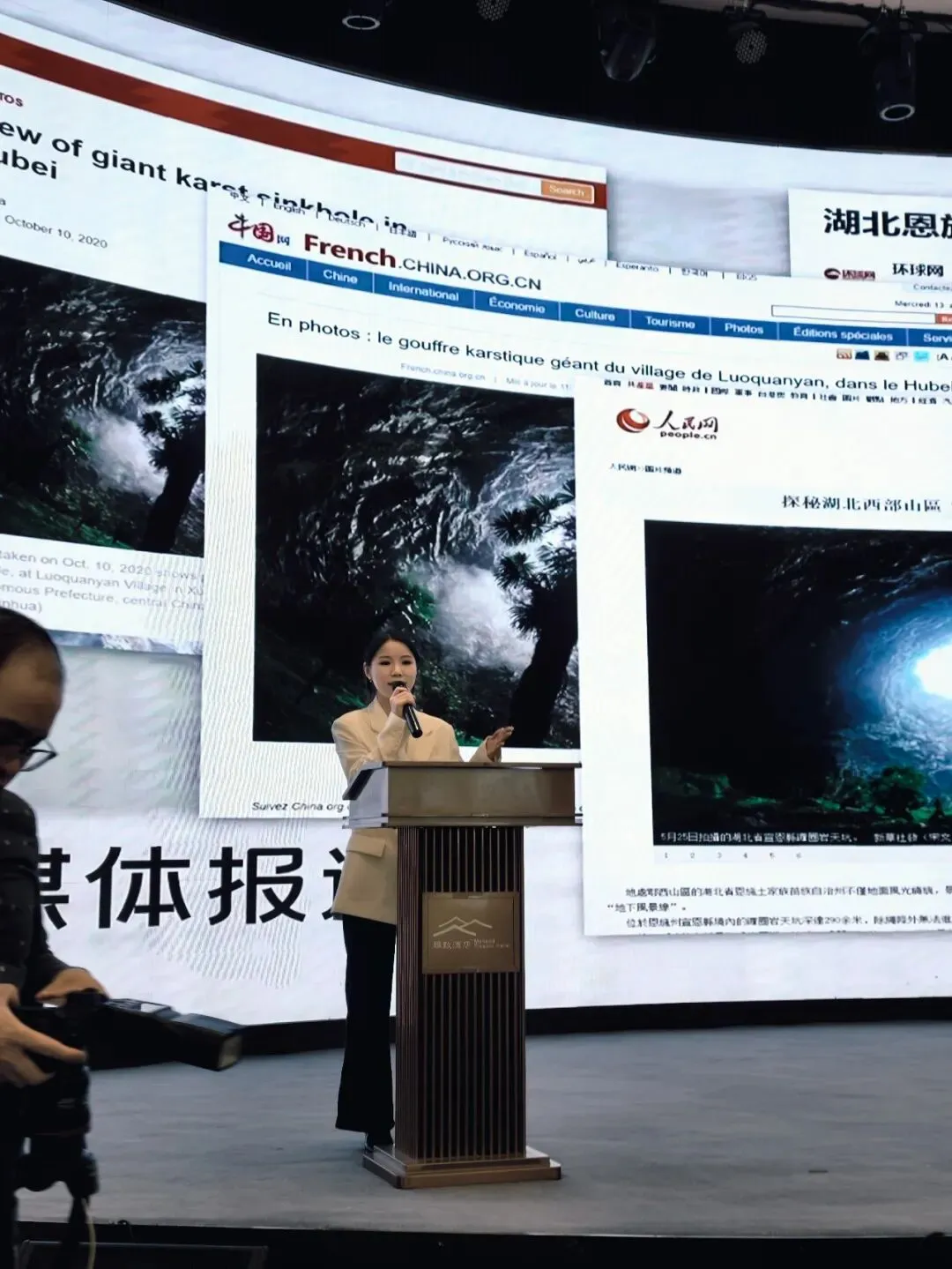 矅天眼景区作为其中之一,向在场嘉宾作了重点推介。推介官从5亿年前的寒武纪讲起,介绍了矅天眼天坑的形成之谜,以及景区近年来不断完善的基础设施和游览体验。从天坑奇观到周边生态,一幅地质探秘的画卷徐徐展开,让在场嘉宾对这个貌似“地球之眼”地质奇观留下了深刻印象。