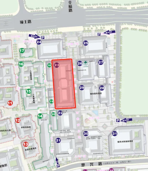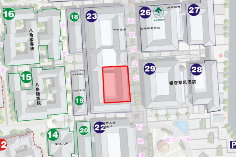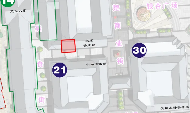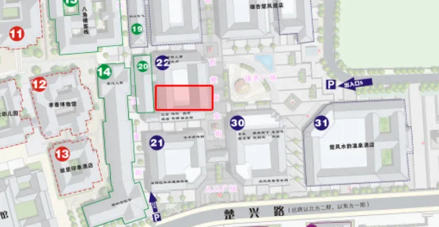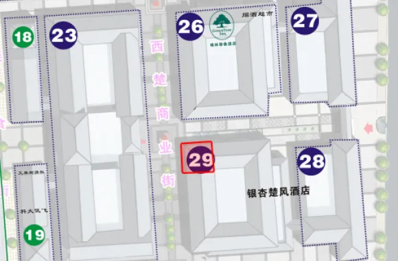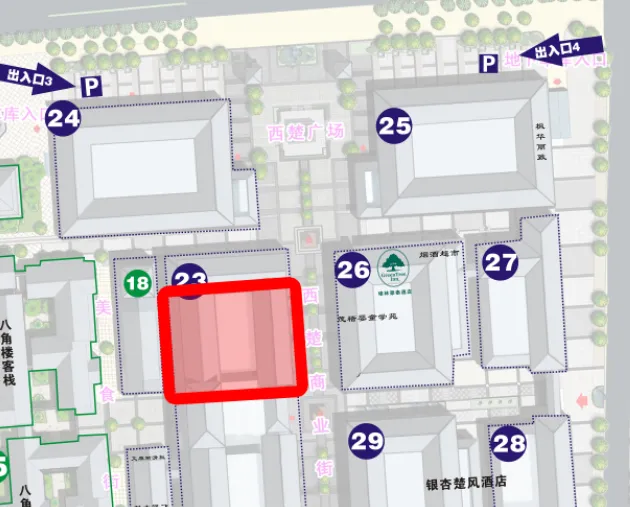 商铺位置:23号楼一层-西楚大街(图中标红区域)