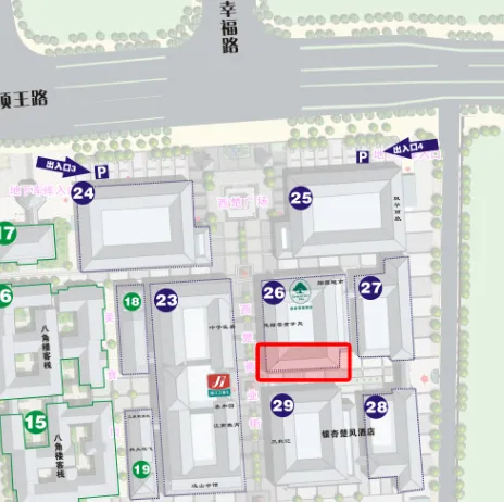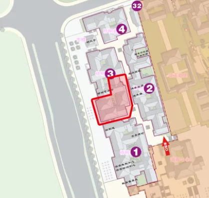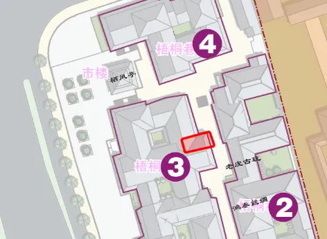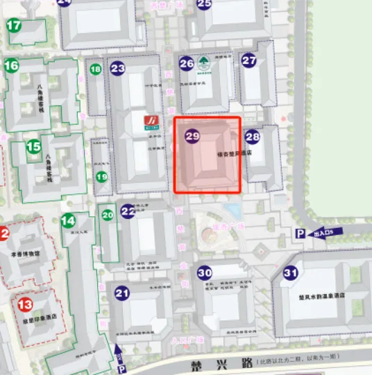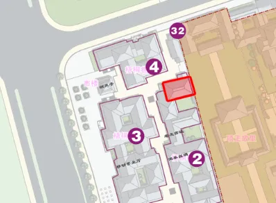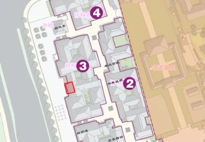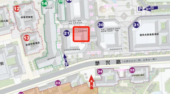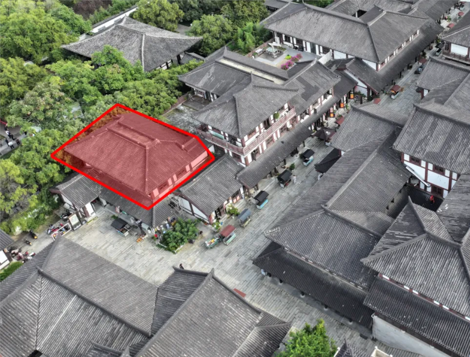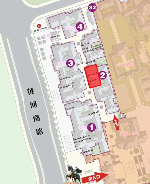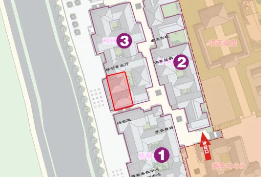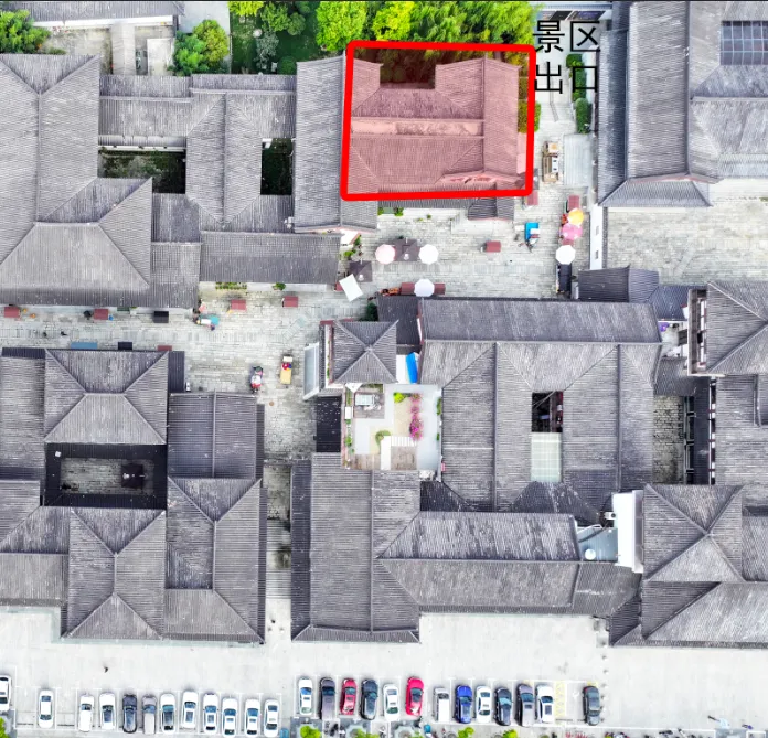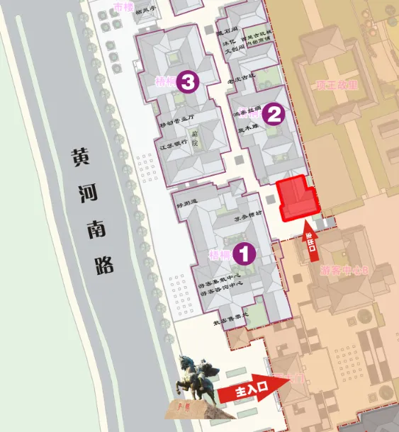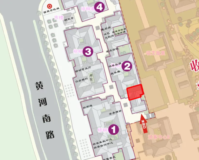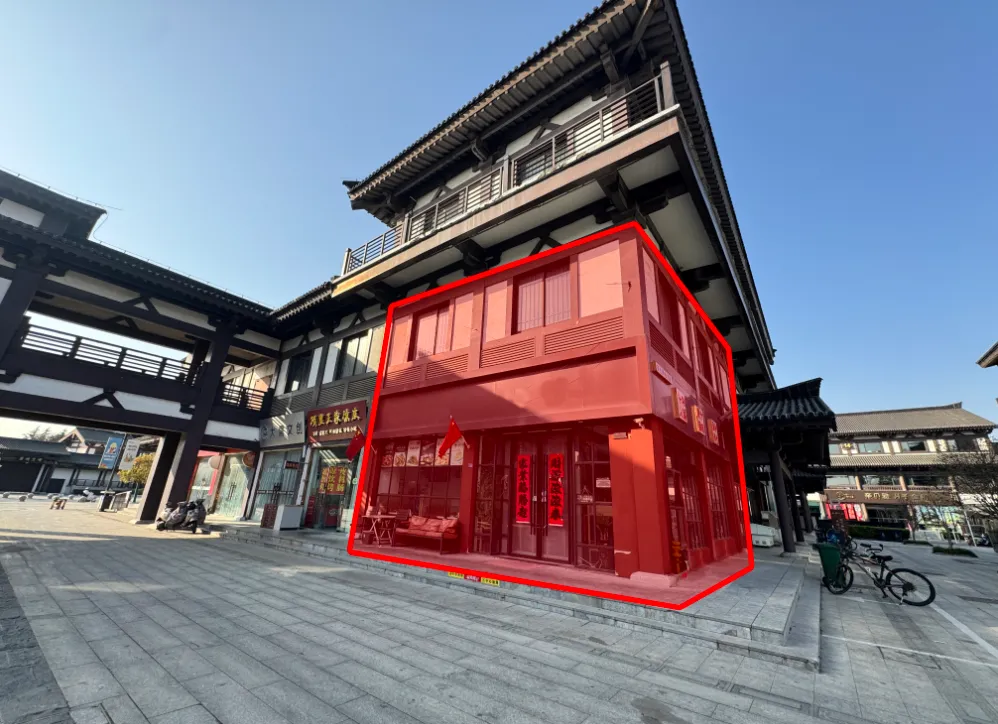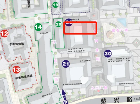商铺位置:2号楼南侧二层-景区出口(图中标红区域)