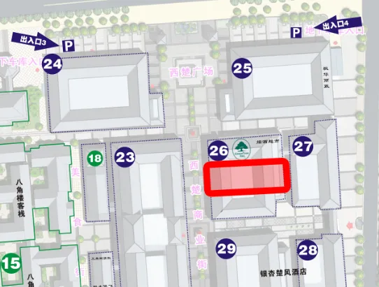 商铺位置:26号楼一层-西楚大街(图中标红区域)
