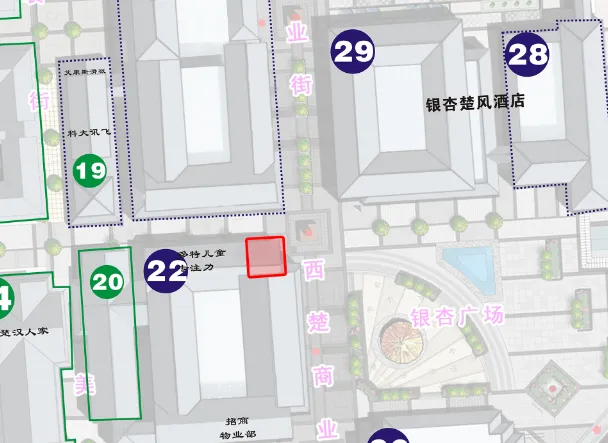 商铺位置:22号楼-西楚大街(图中标红区域)
