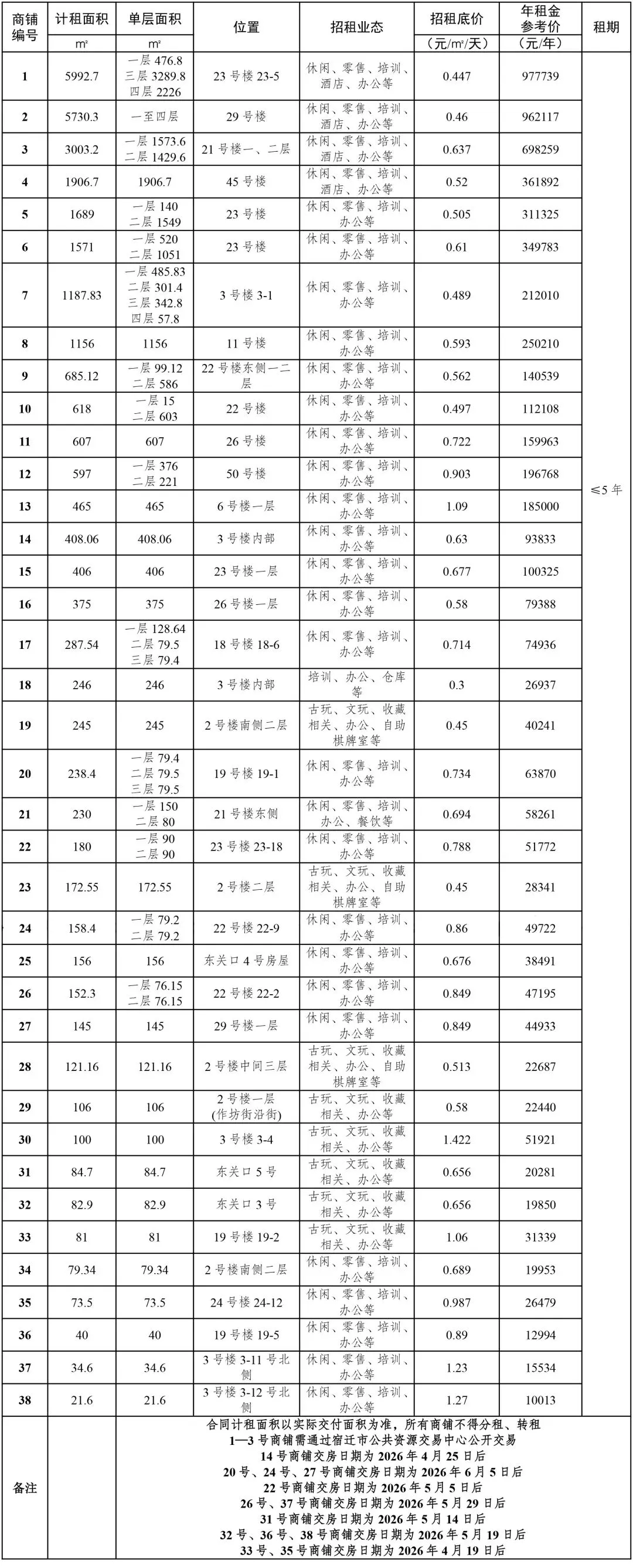 根据规划,现对项王故里景区部分空置房屋进行公开招租,共38间,相关信息如下: