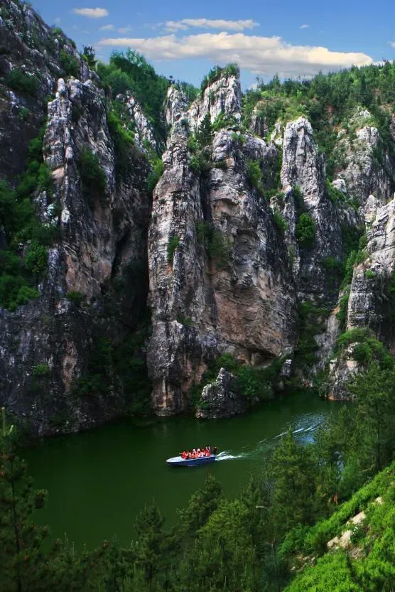 龙潭大峡谷自然风景区现为国家AAAA级景区、国家级地质公园,被称为“辽西小西藏”、“塞北小高原”、“地球美划纹,奇观大裂谷”。峡谷总长54.5公里,纵深348米,最宽处210米,是集山、水、洞、瀑、石凳多种景观为一体的综合性景点。