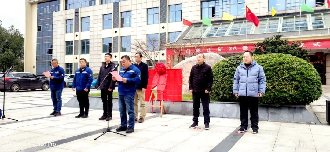 3月4日上午,白象山矿在该矿办公楼前隆重举行3A级旅游景区授牌揭牌仪式,市县旅游管理部门、太白镇的领导,白象山矿相关领导和职工代表出席了揭牌活动。白象山矿党委书记苗涛发表了致辞,马鞍山市文化和旅游管理局二级调研员童世荣在讲话中高度评价了白象山矿3A景区创建工作,并就景区建设和价值提升提出了指导意见。