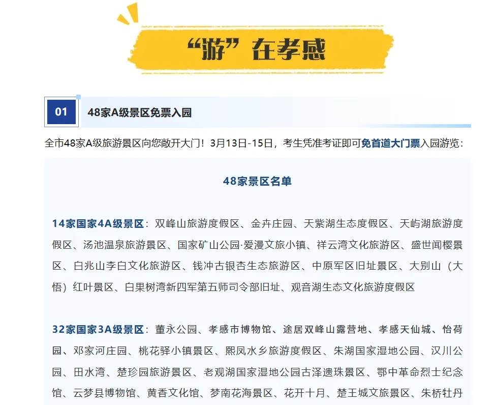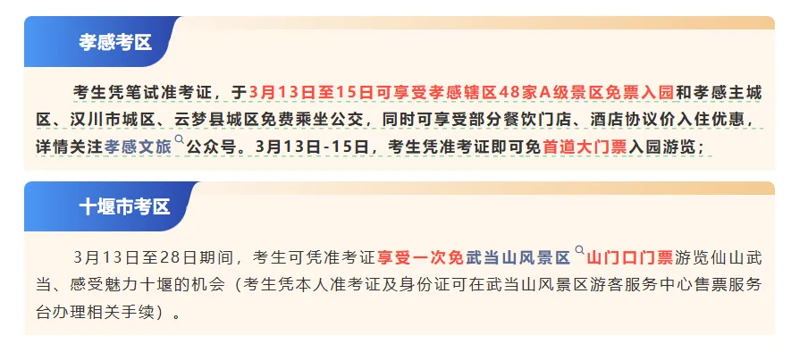 考孝感和十堰考试注意!凭省考准考证全市景点免费!