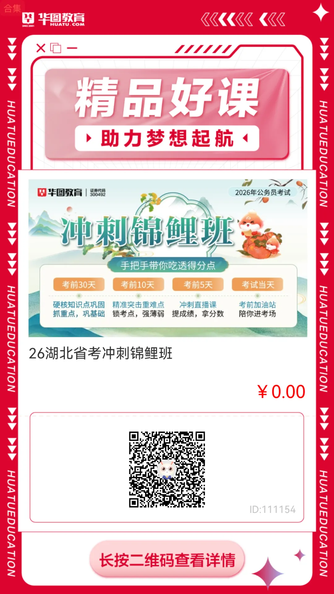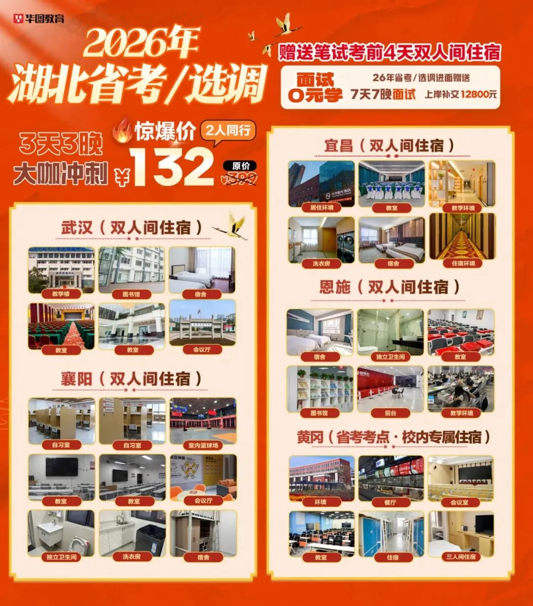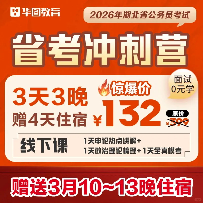 🔥湖北省考笔试考前3天3晚冲刺营,赠4天住宿】