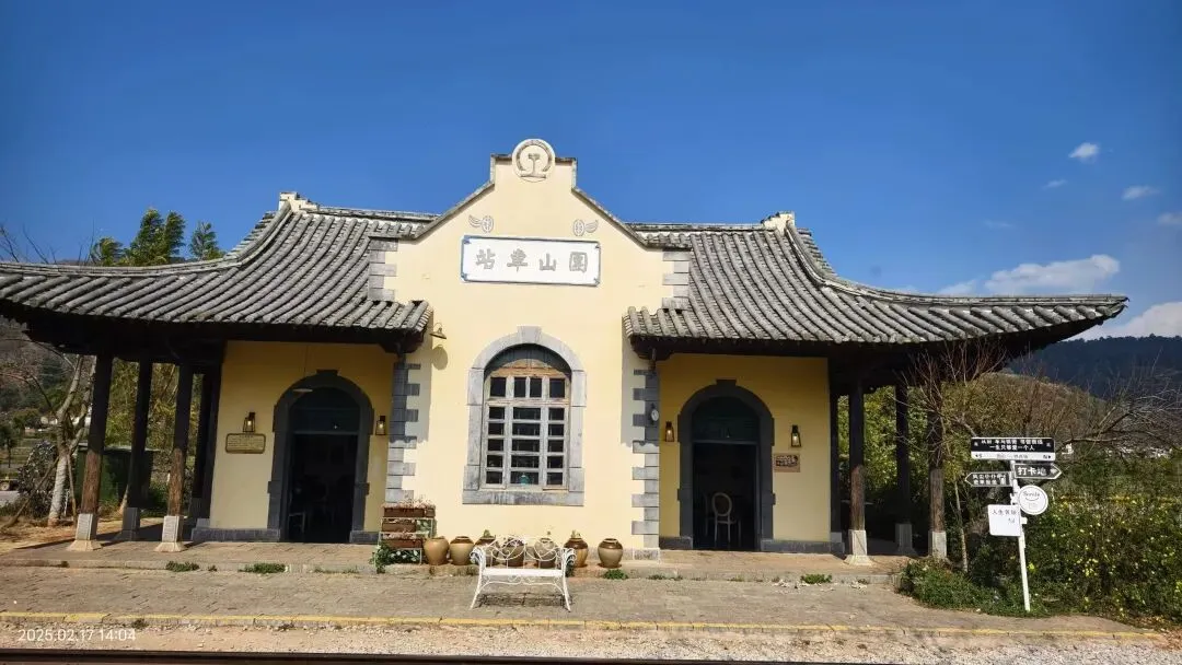 团山民居往回走不到一公里就是团山米轨小火车站,这个火车站是一个独立的小房子,外观看没什么,走进房子里,满是欧式风格,显得庄重而华丽。