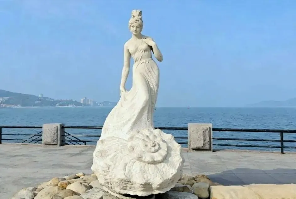 幸福公园内有很多雕塑,造型独特、设计精美,是一份不容错过的精彩。 海螺姑娘雕像,乍一看差点以为是美人鱼。