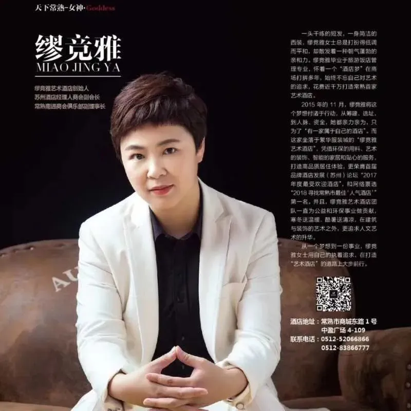 1.缪竞雅,2006届毕业生,创办苏州缪竞雅艺术酒店有限公司并担任总经理。