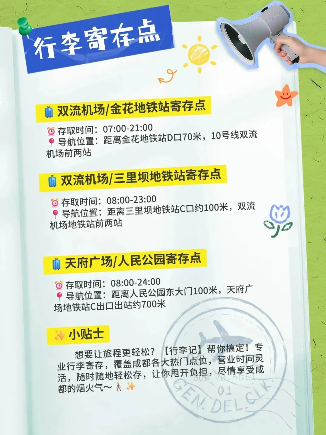 来成都别被行李拖累!整理了超全寄存点+必打卡清单,轻装上阵逛吃更巴适👇