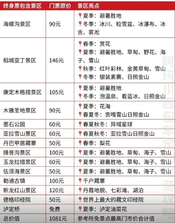 四川川西甘孜州推出14个景点终身门票