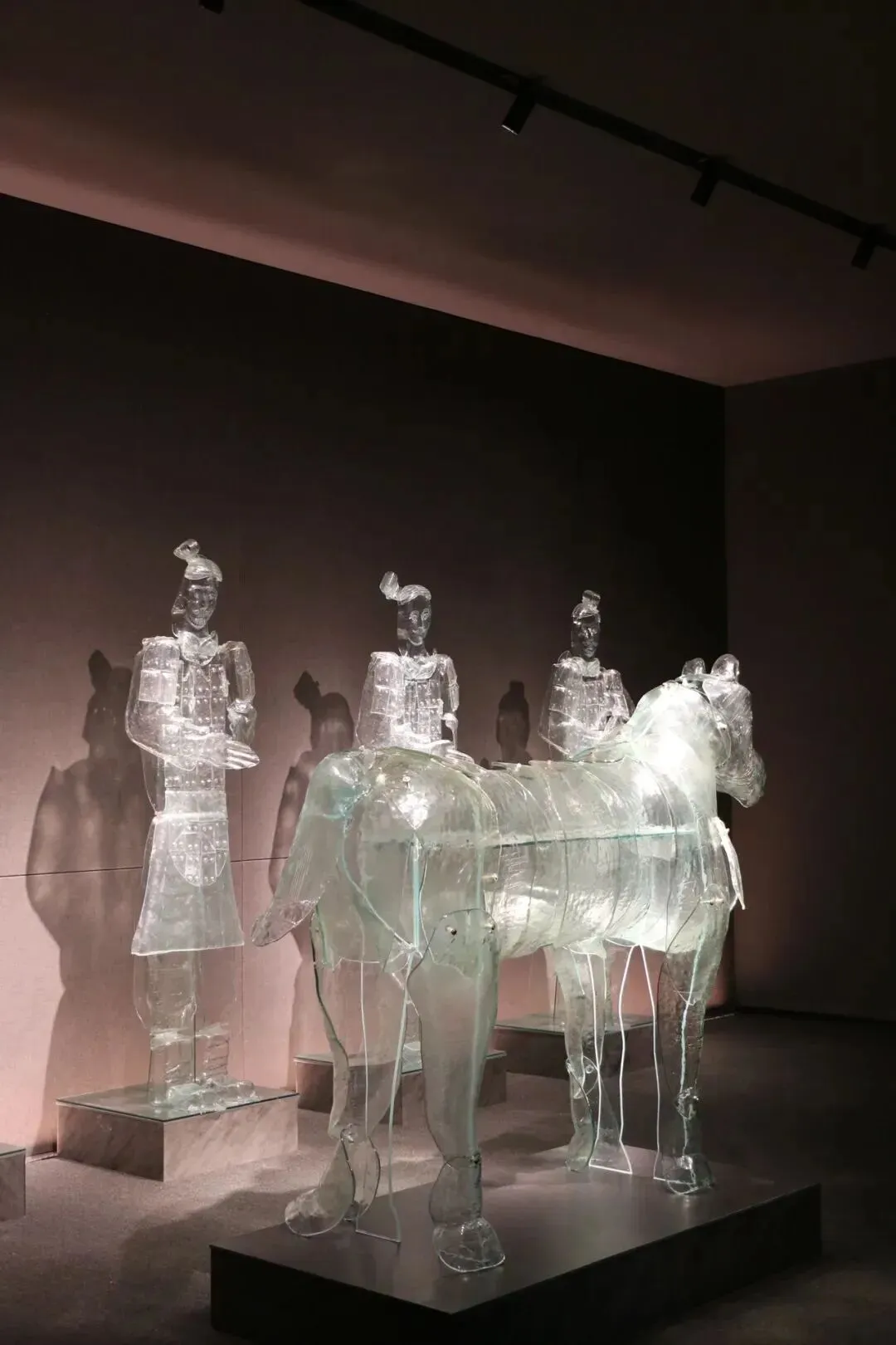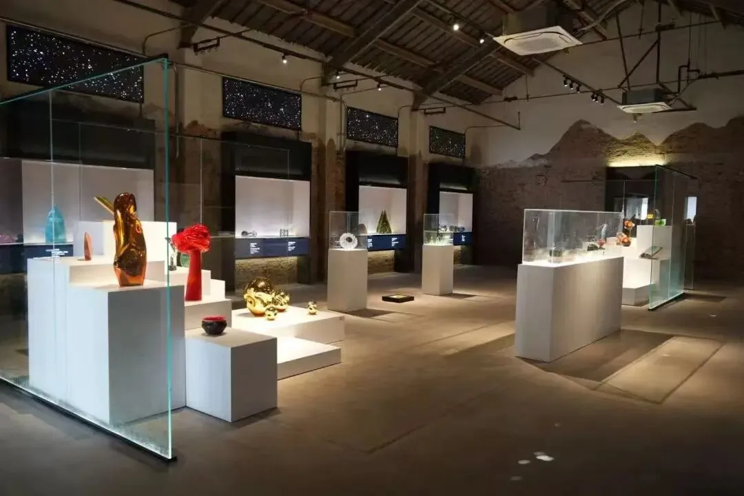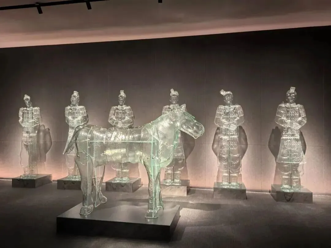 其镇馆之宝《兵马俑》琉璃雕塑群由六尊俑与一匹骏马组成,是世界最大的琉璃马雕塑。该作品创新性地以剔透琉璃为载体,完美融合了材质的轻盈通透与历史题材的厚重深沉。