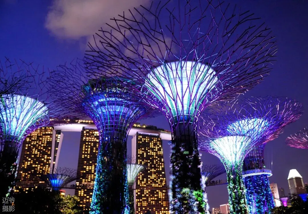 滨海湾花园是一个大型城市花园,由滨海东花园、滨海南花园和滨海中心花园组成,以壮观的超级树(Supertree)和花穹(Flower Dome)闻名,是自然与科技结合的理想场所。占地 101 公顷,这里有 38 万株来自世界各地的珍稀植物,并拥有时尚梦幻的外观。