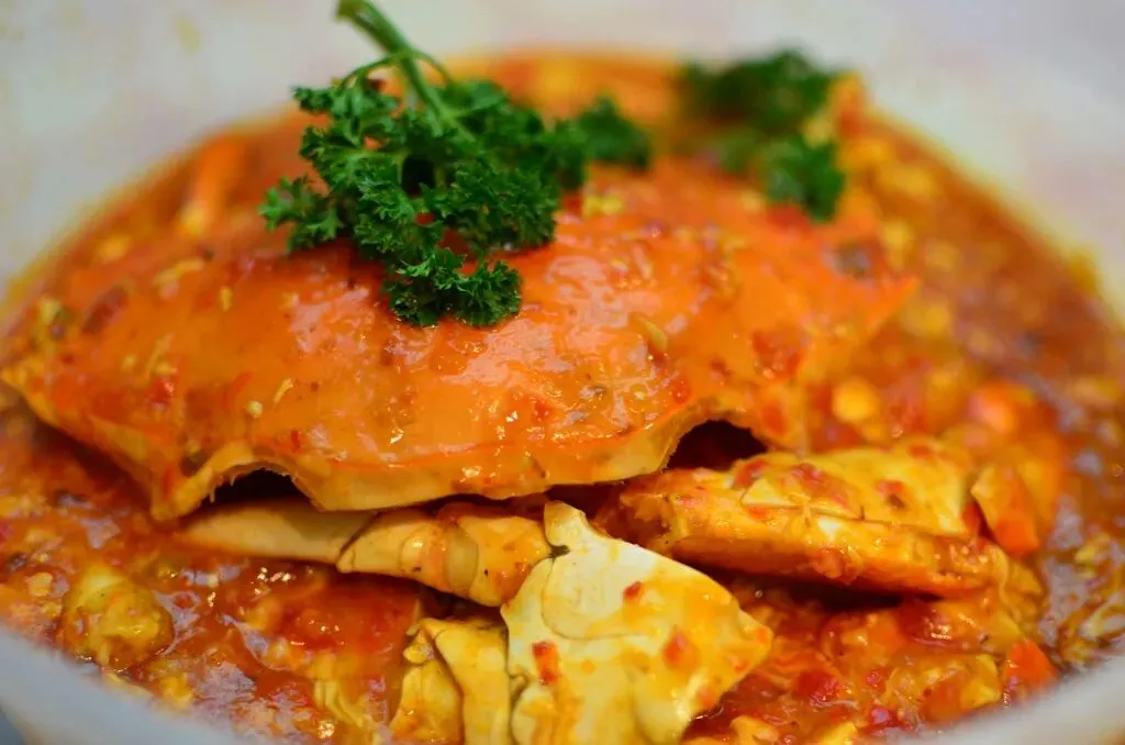 辣椒螃蟹是新加坡的招牌海鲜菜肴,采用新鲜螃蟹与香浓的番茄辣椒酱烹调而成,微辣中带有甜味,通常搭配炸馒头一起享用,是不可错过的美食。