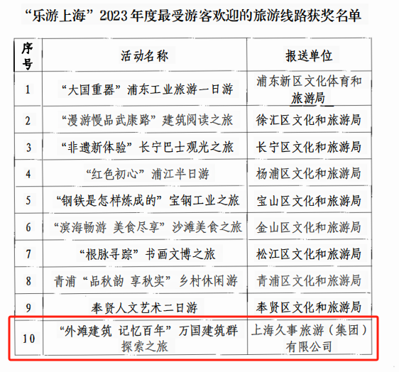 久事旅游旗下这个项目获评2023年度“乐游上海”最受游客欢迎!
