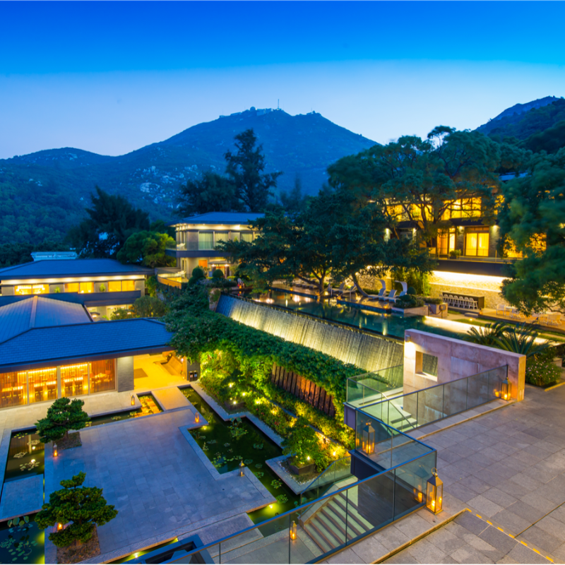 走进静云山庄,一栋栋新中式院落依山而建,隐秘而安静的氛围让我们不由得放慢了脚步。推开露台的落地窗,凭栏眺望,天、地、山、海,一个深呼吸便将眼前的美景纳入肺腑间。