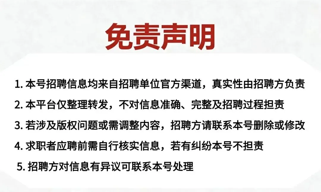 5. 学历要求:高中及以上学历,具备岗位所需工作能力;