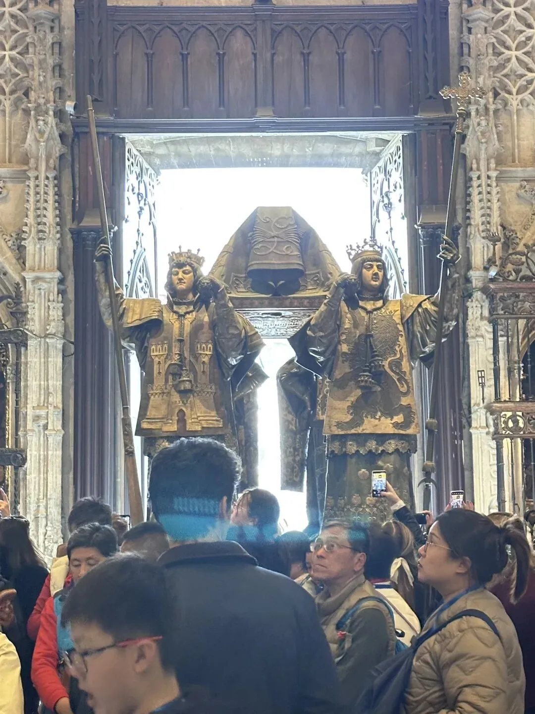 中午12点进场,2点出门,2点半赶去塞维利亚大教堂,看那个著名的四王抬棺。