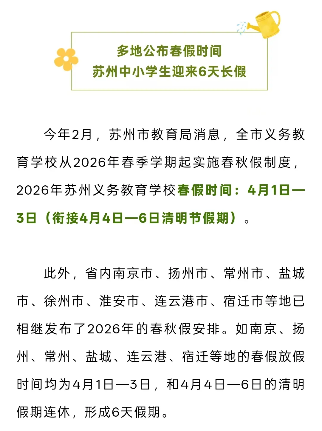 春风一吹,昆山就醒了。今年春假连着清明,整整放六天假,“神兽”即将出笼,家长们准备好了吗?