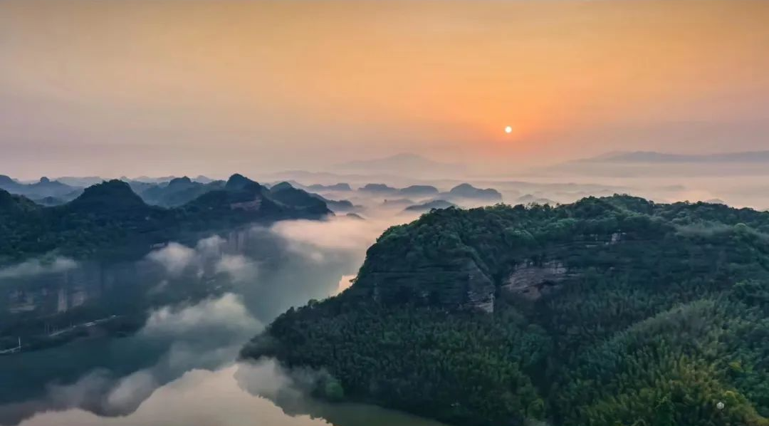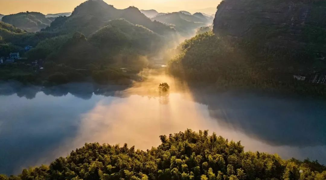 翠江绝佳观日点,受上游东江湖水的影响,每年到4—10月份在日出日落时分,还能欣赏到仙气满满的雾漫翠江,出片率超高!