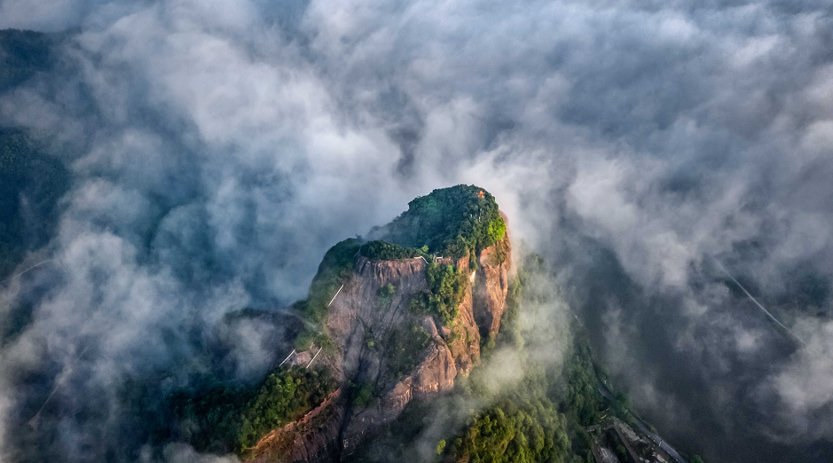 飞天山最不缺的就是连绵而成的山。神仙寨、聚仙台、丹霞之心、睡美人、剪刀坳、狮子岭、千年悬棺、喜鹊坦、穿坦、黑坦,各种奇形怪状......