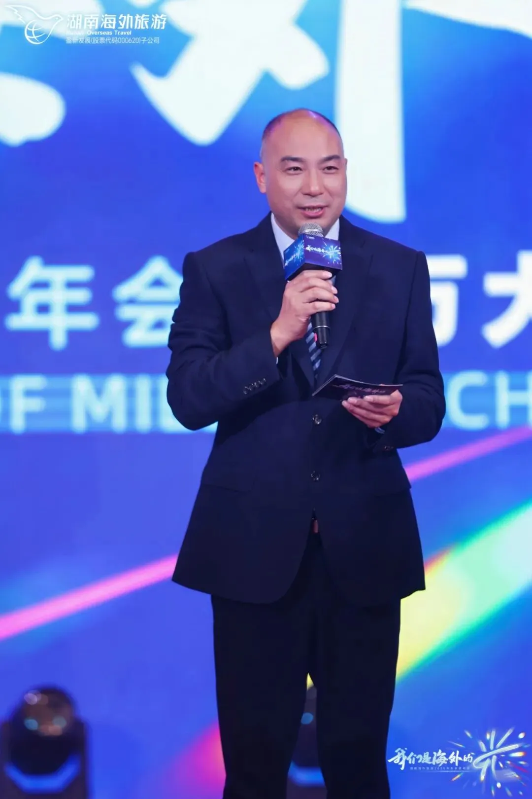 盈新发展董事长、总裁王赓宇为晚会致辞。王总首先向湖南海外在2025年取得的卓越战绩致以热烈祝贺,并向全体奋斗者致敬。他亲切表示:“北京总部永远是家,欢迎大家常回家看看。”