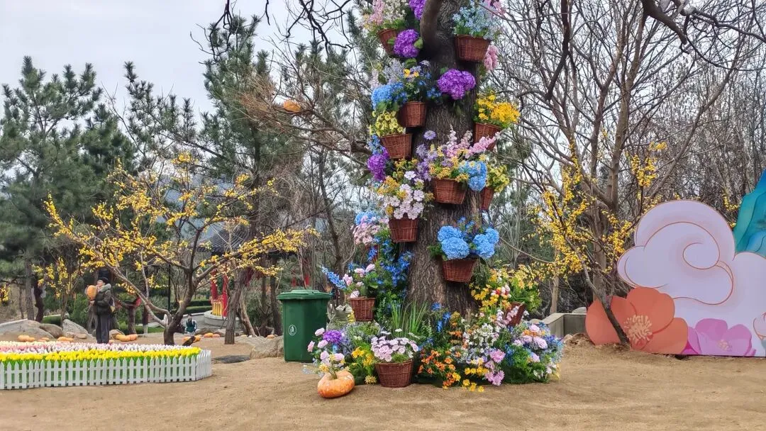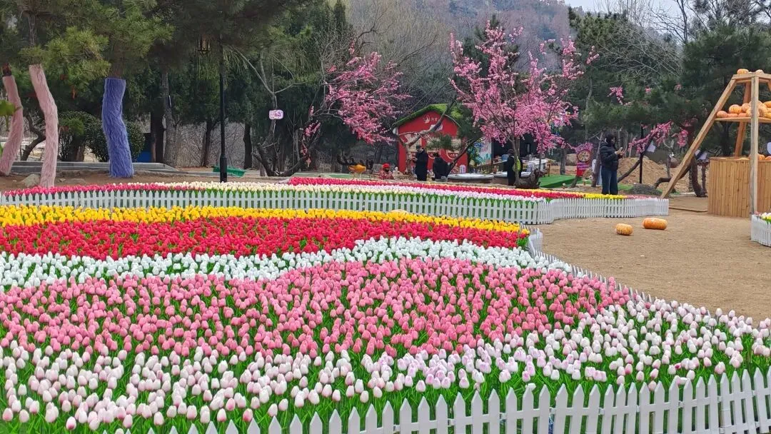 在这里,春节的年味尚未褪去,新甫山仙山花海节如约而至,园内郁金香、迎春花开得烂漫,五彩斑斓的积木房子更是瞬间吸引了孩子们的目光,小家伙们索性不登山了,在原地玩起了搭房子和三国杀,忙得不亦乐乎。