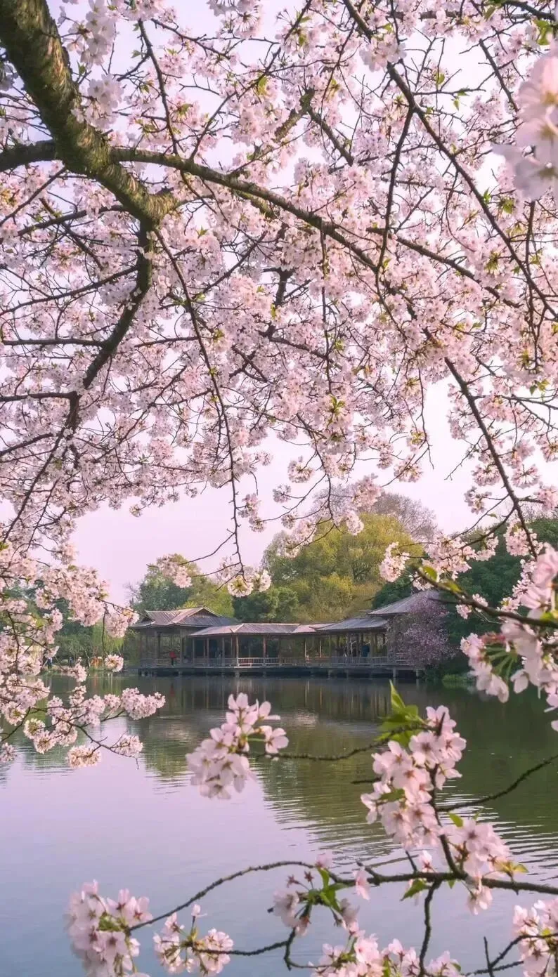 西湖边的王牌赏樱地,从来不负期待。樱花、水榭、曲桥与远山相映成趣,勾勒出江南园林的诗意画卷,没有喧嚣人潮,只有清风落樱,静静感受东方美学的极致浪漫。
