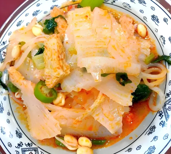 第三美食:御面也叫“玉面”,色亮如玉,是宫廷贡品。吃法像凉皮但更有嚼劲,佐以蒜泥、姜末、陈醋、油泼辣子,酸辣鲜香,爽口解腻。夏天吃一碗,瞬间降温。推荐去“三原县”当地的老字号餐馆,最正宗。
