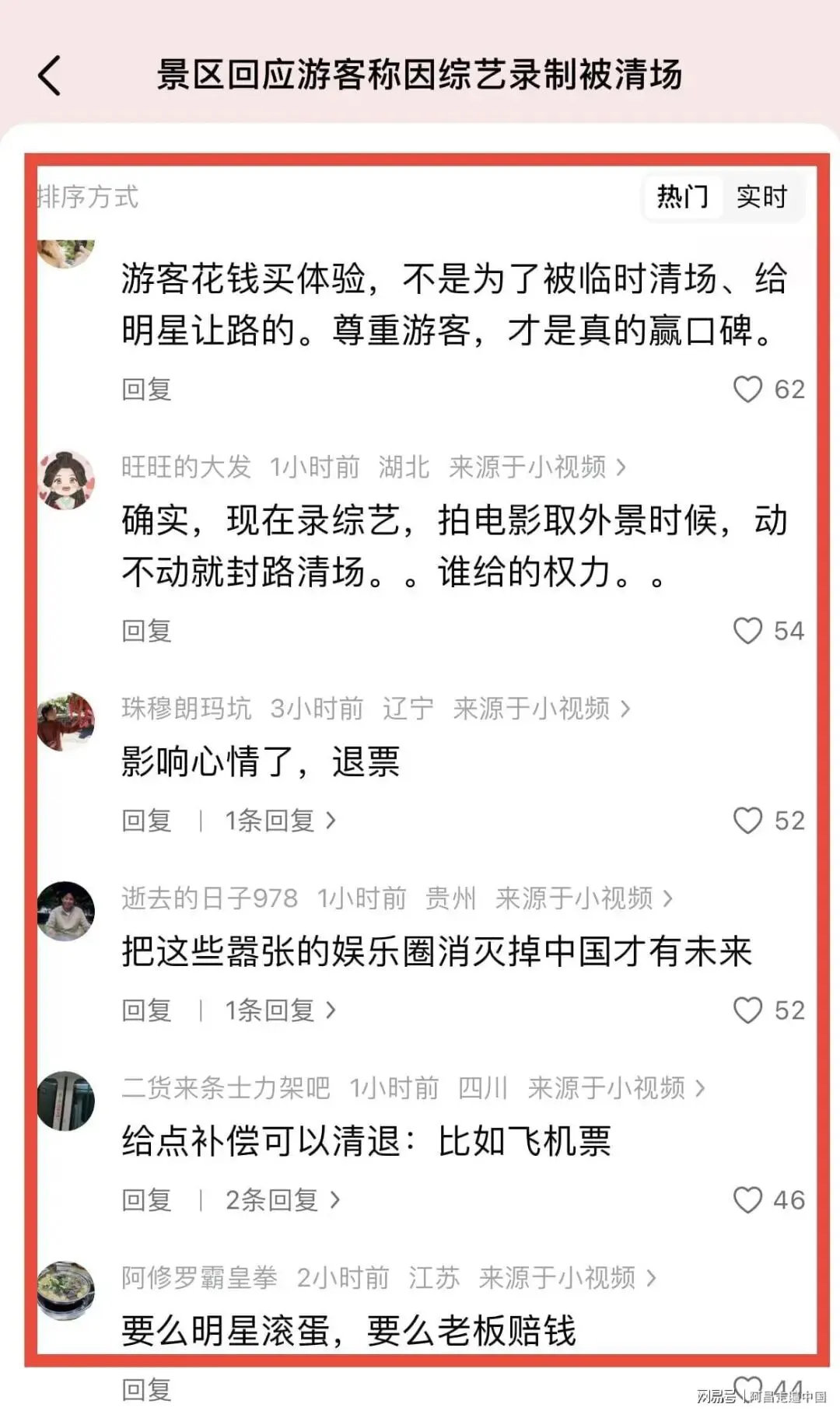 大量网友呼吁景区主动退费并致歉,并留言热议: 1. 明星出行动辄联动多部门封路清场,这种“特权感”从何而来?调配公共资源的钱,是谁在买单?